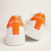 L’arte è il concetto fondante delle Purestar. Abbiamo giocato con un classico, portandolo a un nuovo livello attraverso tecniche e materiali innovativi. Questo modello realizzato in bianco ottico si caratterizza per il talloncino arancio fluo.