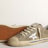 La bellezza che risiede nella semplicità: le nostre V-Star sono l’incontro di una shape essenziale e dettagli di stile. Con la tomaia in suede color grigio tortora, questo modello si caratterizza per la stella in pelle laminata argento. E come tocco finale di stile, i lacci bianchi.