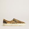 VCE parla un linguaggio semplice. Richiamando l’immagine spensierata della cultura skate californiana, il design slip-on è l’emblema del comfort, della versatilità e del movimento. Con la punta in gomma e la tomaia in cavallino con stampa leopardata nei toni del beige e del marrone, questo modello da uomo è caratterizzato dal talloncino in pelle nera.