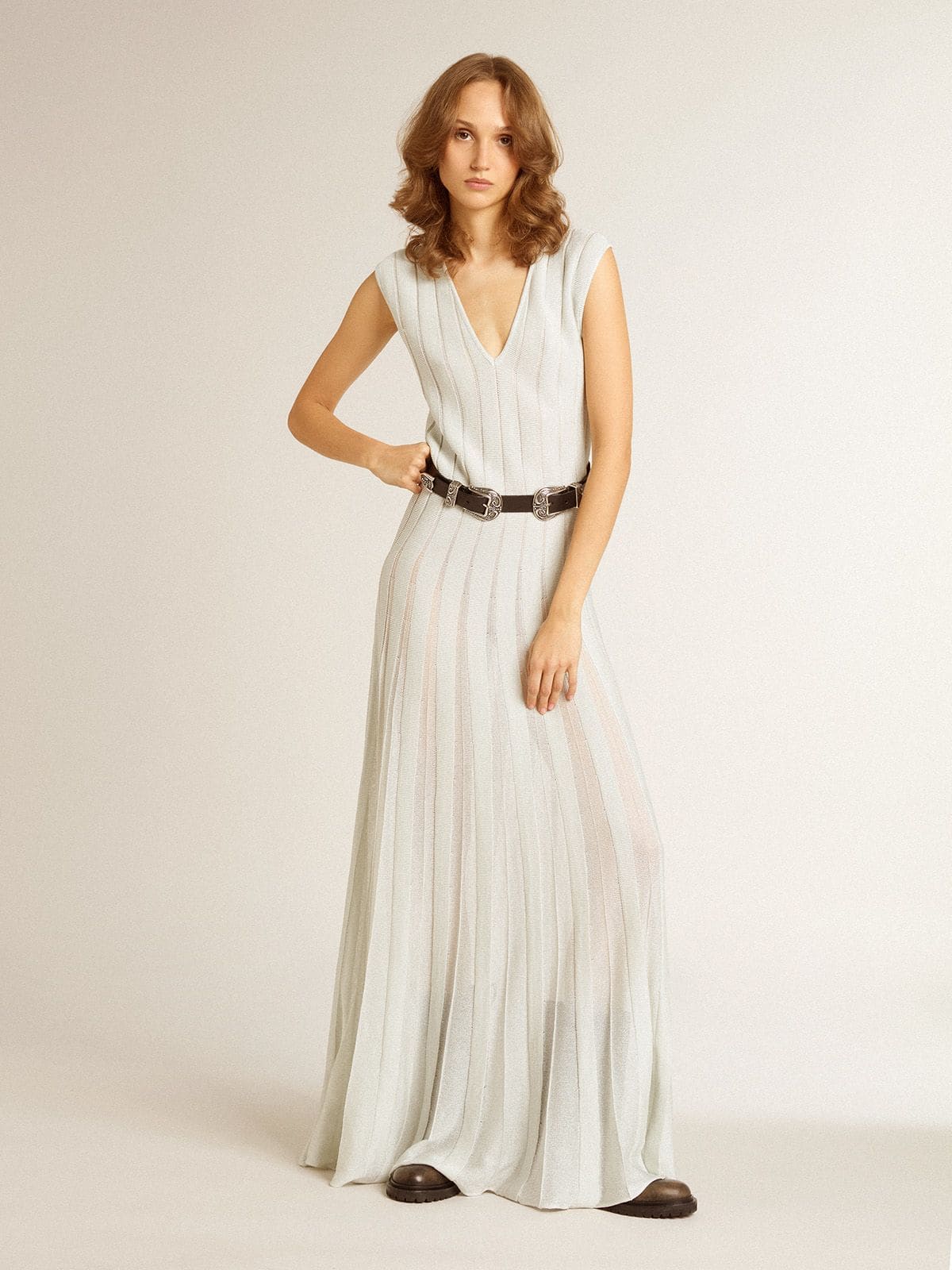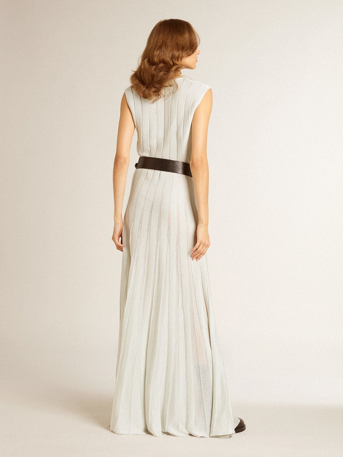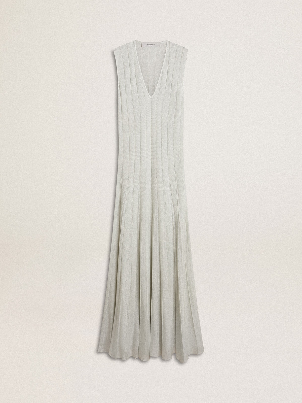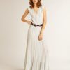 Una collezione creata per essere al tuo fianco in ogni momento, pronta accompagnarti in giornate luminose e avventure indimenticabili. Questo vestito lungo di colore carta da zucchero è caratterizzato dallo scollo a V e dal motivo a righe see-through verticali. E come tocco finale, le maniche smanicate e la doppia stellina sul retro.