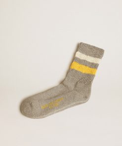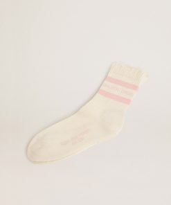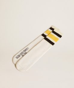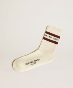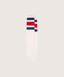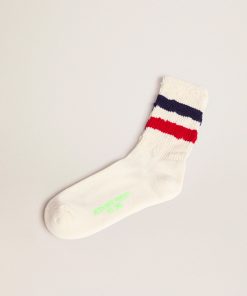 Golden Goose Uomo Accessori Calzini Bianco Vissuto Con Stripes Blu E Rosse | Bianco Vissuto