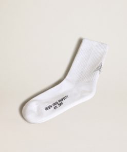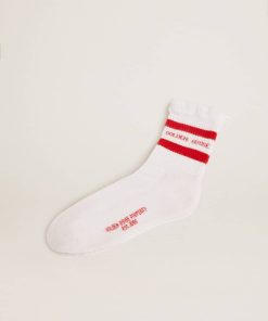 Golden Goose Uomo Accessori Calzini Bianchi Con Dettagli Distessed E Stripes Rosse | Bianco