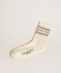 Golden Goose Uomo Accessori Calzini Bianco Vissuto Con Stripes Blu E Rosse | Bianco Vissuto
