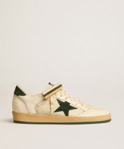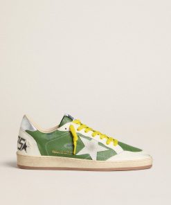 Golden Goose Uomo Scarpe Ball Star In Nylon E Nappa Con Stella E Talloncino In Suede Verde