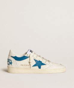 Golden Goose Uomo Scarpe Ball Star Ltd In Nappa Con Stella In Pelle Turchese E Talloncino Bianco