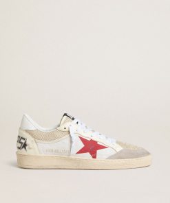 Golden Goose Uomo Scarpe Ball Star Ltd In Pelle Cracklé E Rete Bianche Con Stella In Suede