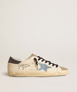 Golden Goose Uomo Scarpe Soul Star In Suede Verde Con Talloncino In Pelle Bianco Latte