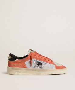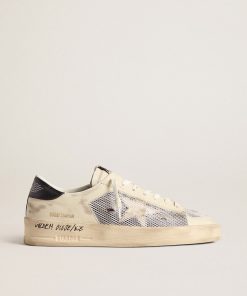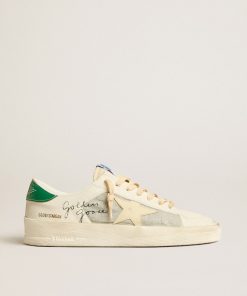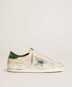 Golden Goose Uomo Scarpe Stardan In Suede E Rete Bianchi Con Stella E Talloncino In Pelle Verde