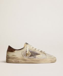 Golden Goose Uomo Scarpe Stardan In Nabuk E Rete Con Stella In Pelle Stampa Lucertola Marrone