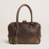 Golden Goose Uomo Scarpe Stardan In Nabuk E Rete Con Stella In Pelle Stampa Lucertola Marrone