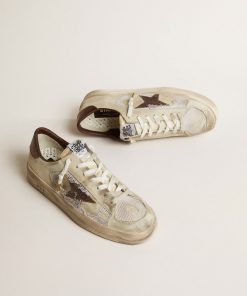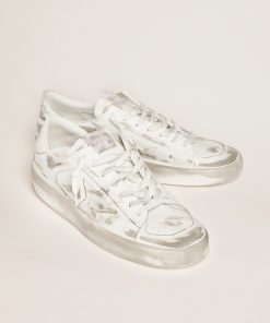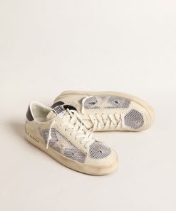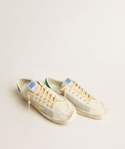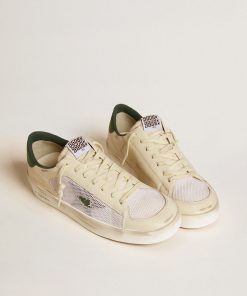 Golden Goose Uomo Scarpe Stardan In Suede E Rete Bianchi Con Stella E Talloncino In Pelle Verde