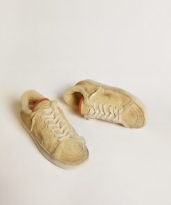 Golden Goose Uomo Scarpe Stardan In Suede Beige Con Talloncino In Pelle E Fodera In Shearling