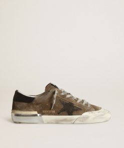 Golden Goose V-star Ltd Uomo In Suede Color Marrone Scuro Con Stella Ton Sur Ton | Uomo Scarpe